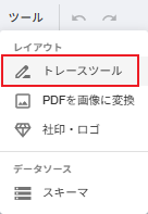 帳票レイアウトの画面上にある[ ツール > トレースツール ] をクリックする