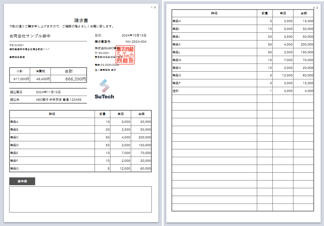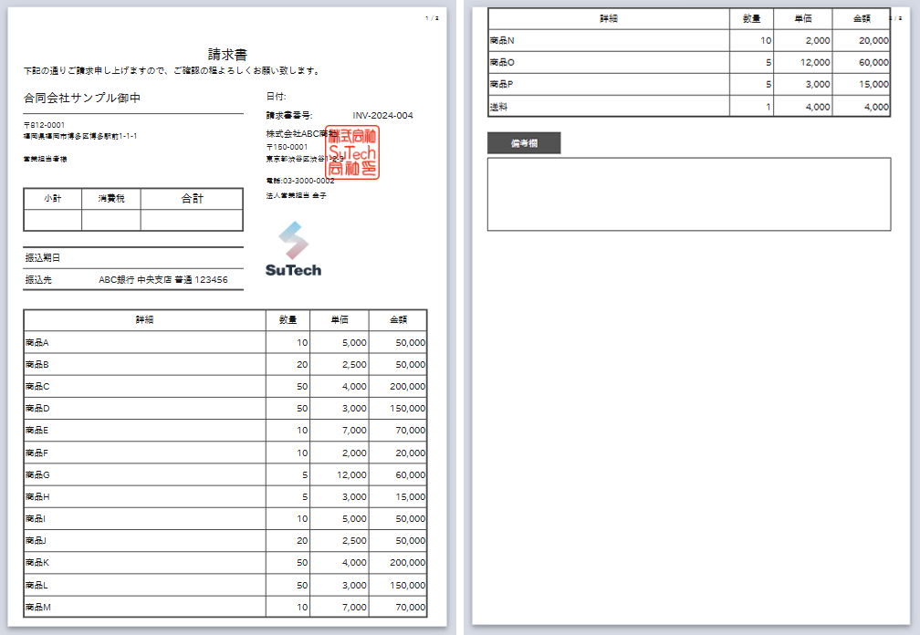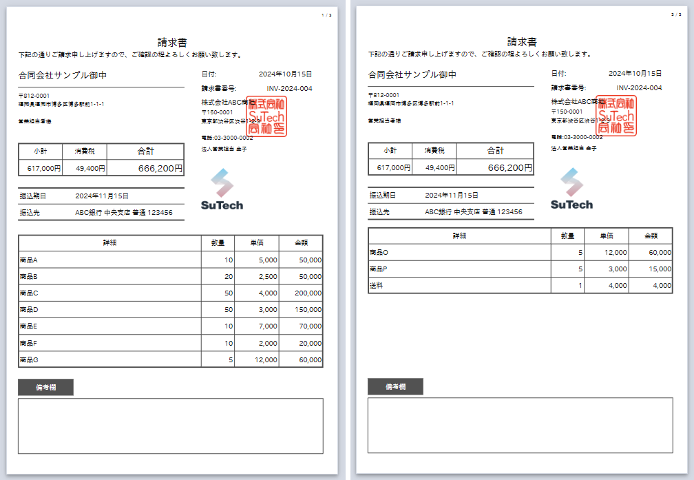 明細が多く複数ページになるような請求明細の場合、改ページの仕方がいくつかあります。